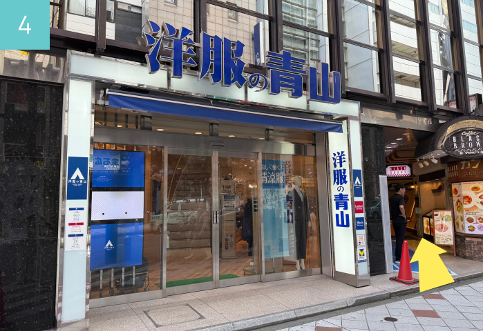 Walk straight ahead, passing Oakley and Yamada Denki Labi on your left. Then following the Aoyama Tailor Shop is a passage way with a sign for the “Black Brown Cafe”. Please go to the rear of the passage and take the lift to the 3rd floor.